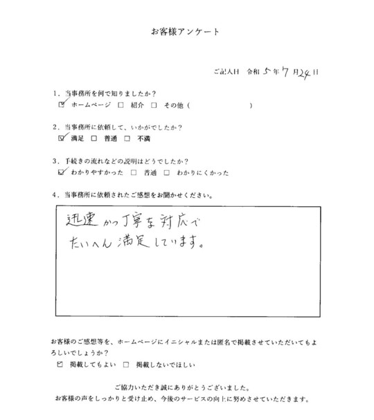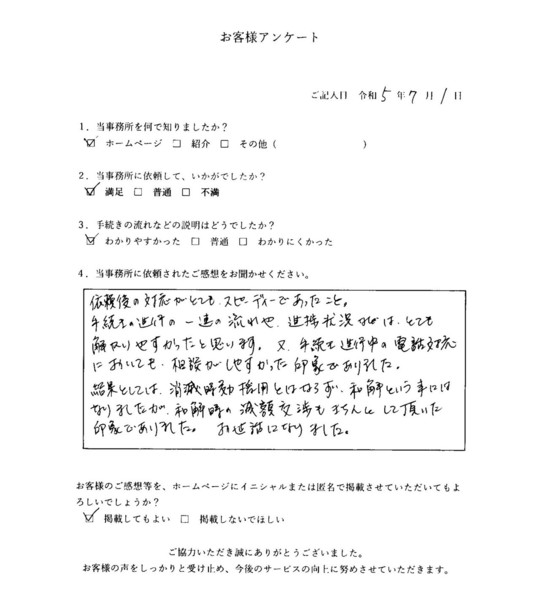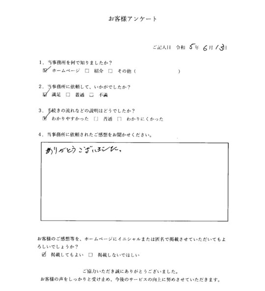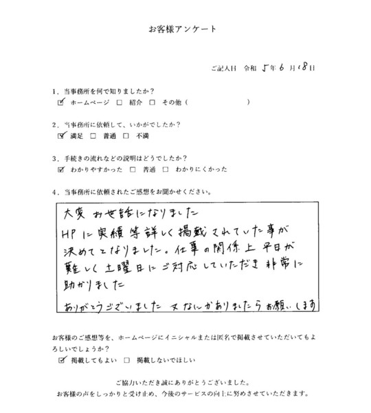 当事務所のサービスをご利用いただいたお客さまの声をご紹介します。