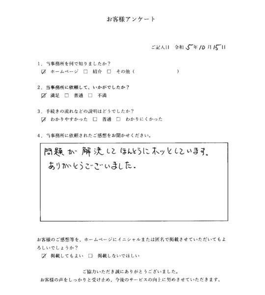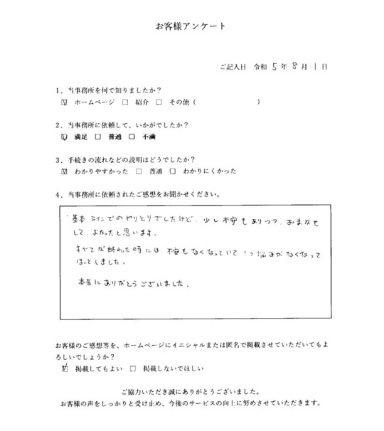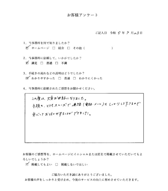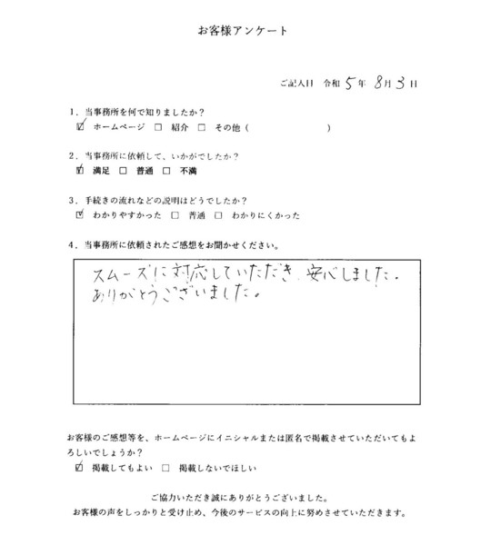 当事務所のサービスをご利用いただいたお客さまの声をご紹介します。