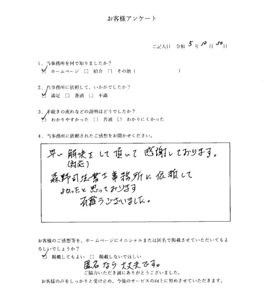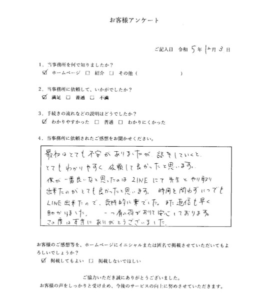 当事務所のサービスをご利用いただいたお客さまの声をご紹介します。