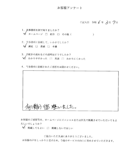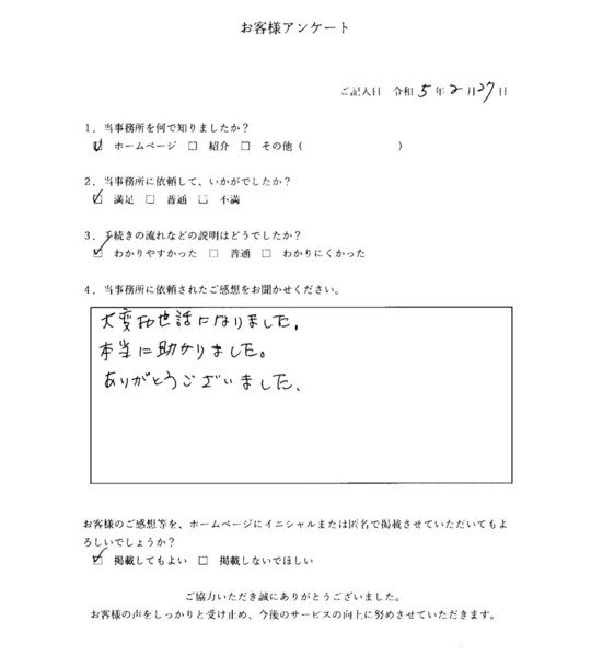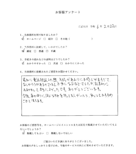 当事務所のサービスをご利用いただいたお客さまの声をご紹介します。