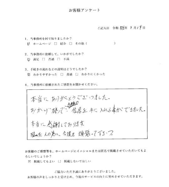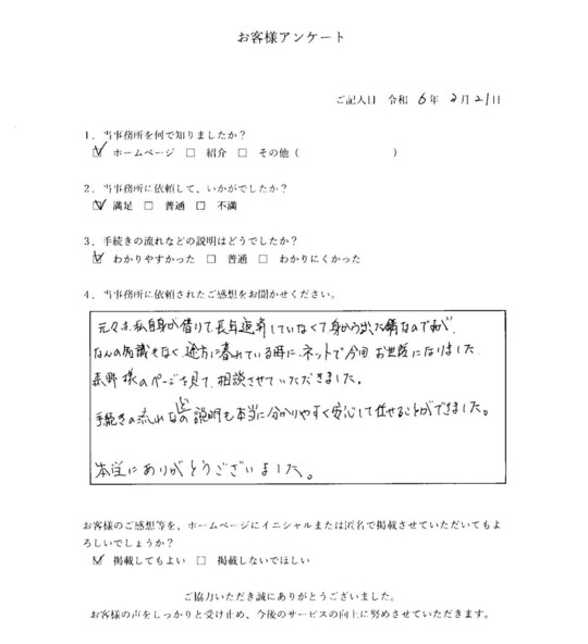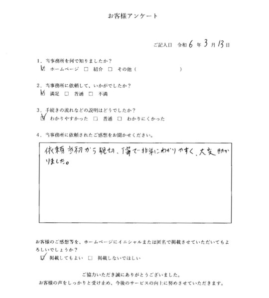 当事務所のサービスをご利用いただいたお客さまの声をご紹介します。