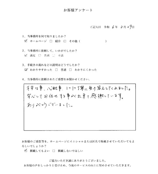 手続きの流れなどの説明も本当に分かりやすく安心して任せることができました。