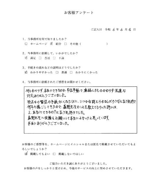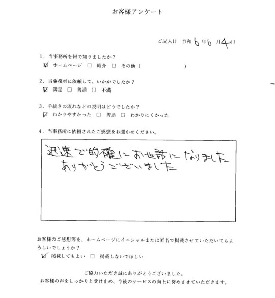 当事務所のサービスをご利用いただいたお客さまの声をご紹介します。