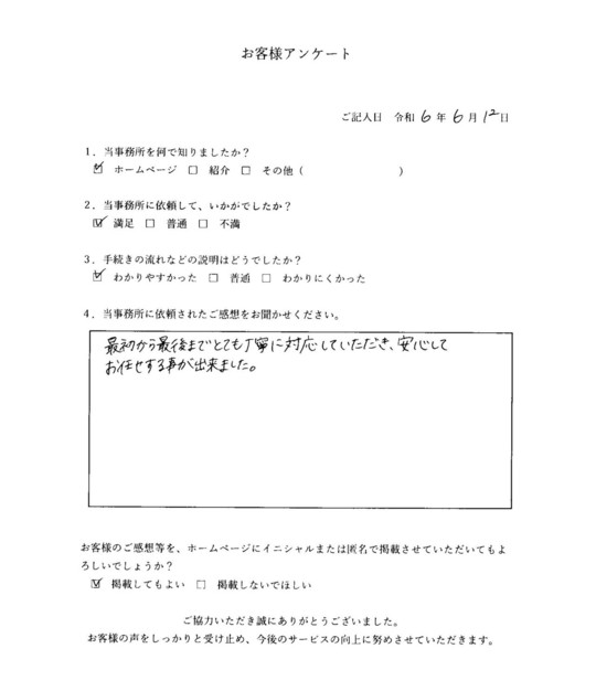 最初から最後までとても丁寧に対応していただき、安心してお任せする事が出来ました。