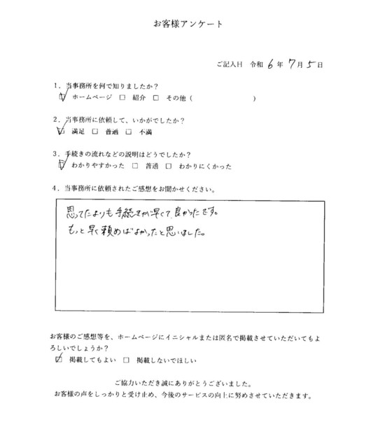当事務所のサービスをご利用いただいたお客さまの声をご紹介します。