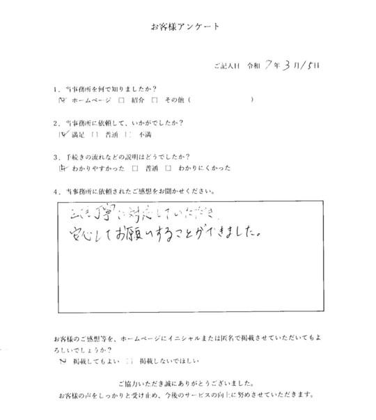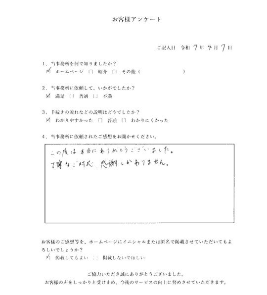当事務所のサービスをご利用いただいたお客さまの声をご紹介します。