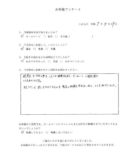 森野司法書士事務所に任せてよかったと思っています。ありがとうございました!