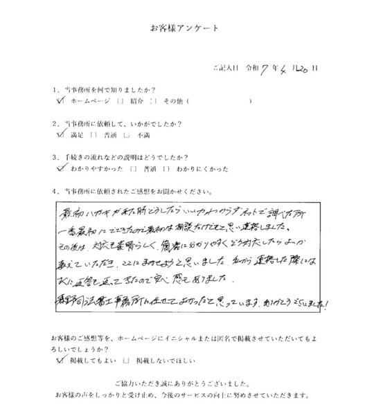当事務所のサービスをご利用いただいたお客さまの声をご紹介します。