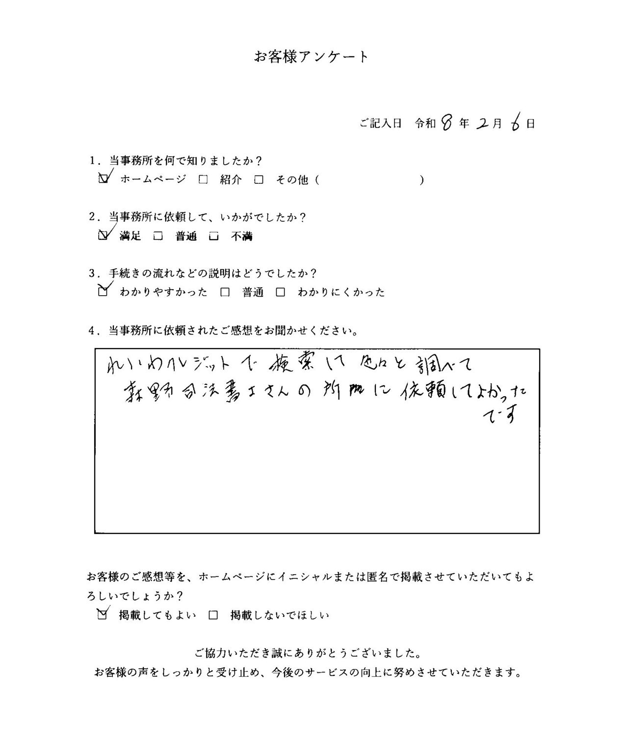 当事務所のサービスをご利用いただいたお客さまの声をご紹介します。