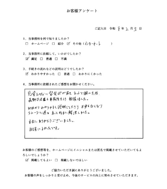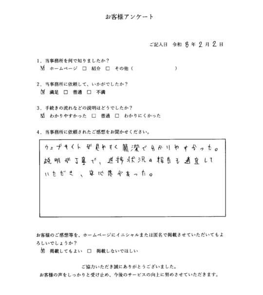 当事務所のサービスをご利用いただいたお客さまの声をご紹介します。