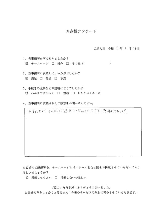 不安でしたが、ていねいに迅速に対応していただき感謝しております。